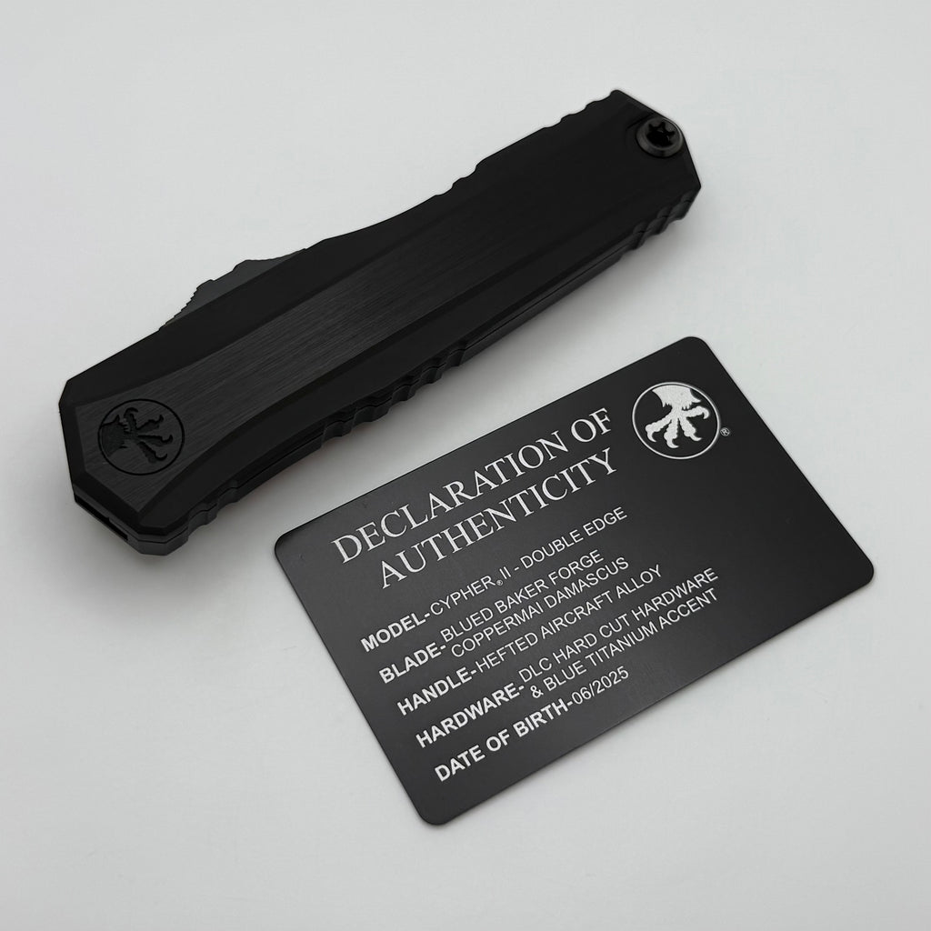 Blem Microtech Marfione Select Cypher II Black w/ D/E Blued Baker Forge Copper-Mai 1242-16MS4