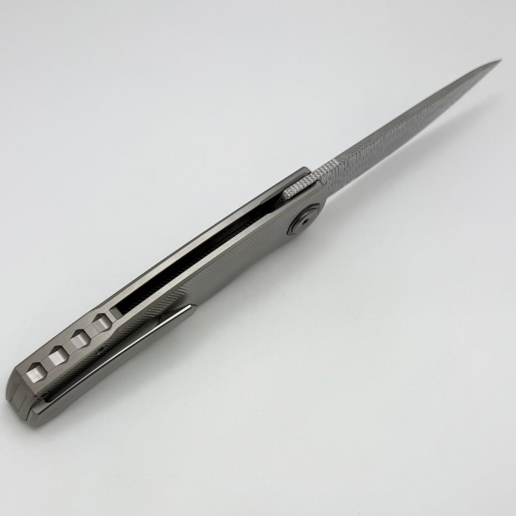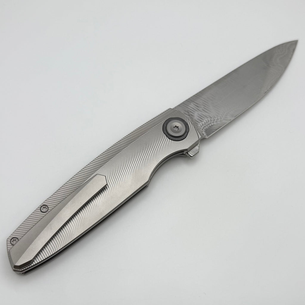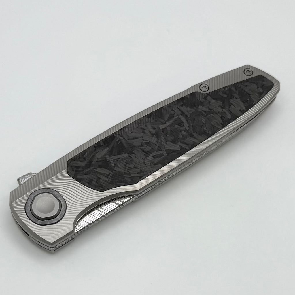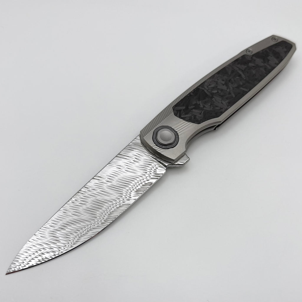 Holt Bladeworks Outlaw w/ Burnished Quill Titanium Shred Carbon Inlaid Handles & Fafnir Damasteel 62
