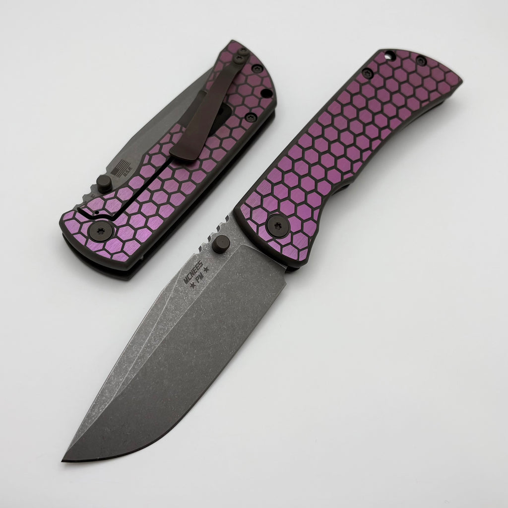McNees Performance Machined Mac 2 3.5" Gen 2 F Stonewash w/ Violet/Bronze Honeycomb Titanium Handles & MagnaCut