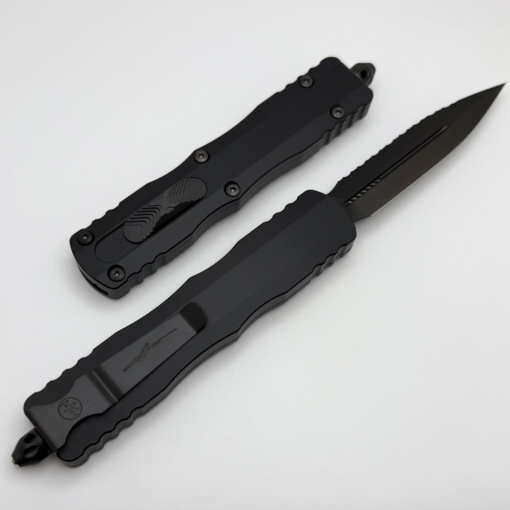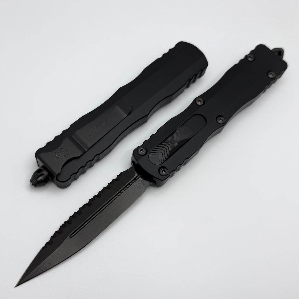 Microtech Dirac Delta Double Edge DLC Shadow Fully Serrated 227-3DLCTSH