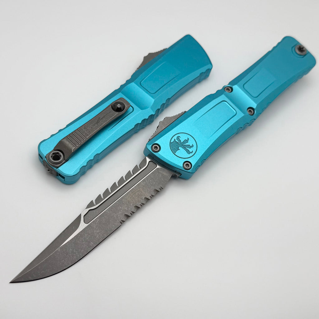 Microtech Knives Combat Troodon Gen III Apocalyptic Partial Serrated Interceptor w/ Turquoise Handle Signature Series 1217-11APTQS