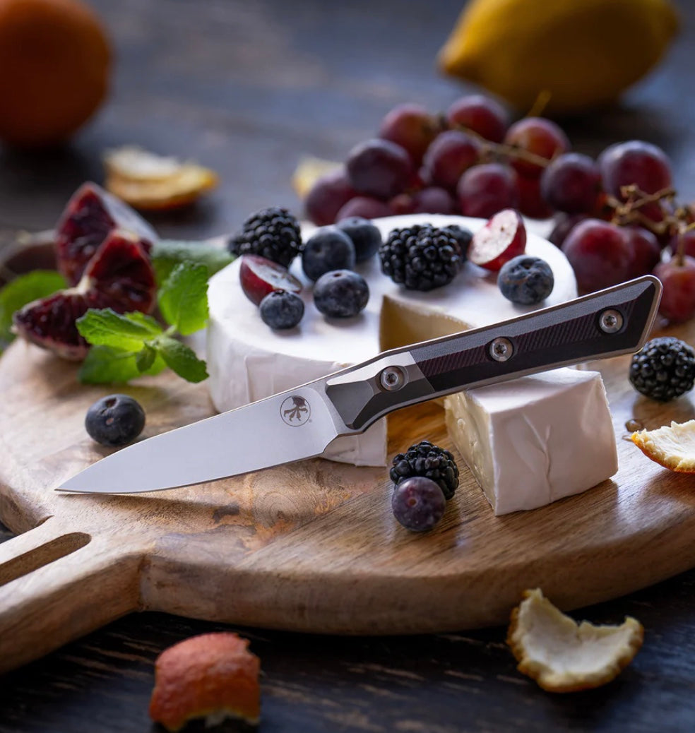 Compact and precise, the 3.5" Paring Knife is a kitchen essential for detail-oriented tasks. Its agile blade excels at peeling, coring, and garnishing, while its sharp tip navigates tight spaces with ease. Perfect for deveining shrimp or slicing small fruit like strawberries, this knife offers unmatched control for delicate prep work.