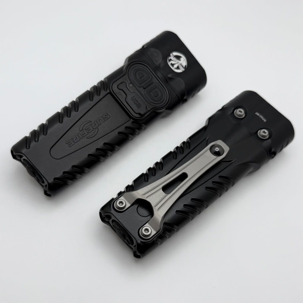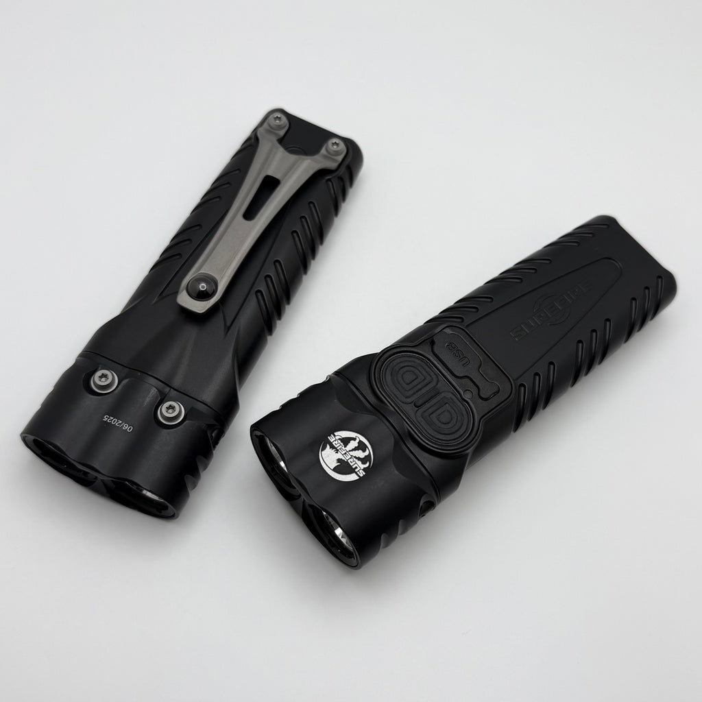 The Surefire Stiletto Pro II features 3 lumen modes from 25 to 500 and 1,500 lumens. Ranging from 23.5 hours on low, to 1.5 hours on medium, and 1 hour runtime on high at full charge. It delivers 35,000 candela that packs a punch far into the dark! These feature Microtech hardware and a matching pocket clip.