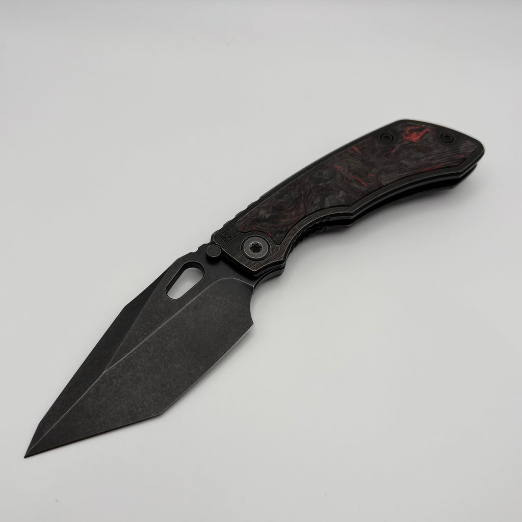 Pre-Owned Custom Knife Factory Rotten Design Evo T Carbon Fiber Inlaid Blackwash Handles w/ Blackwash S90V