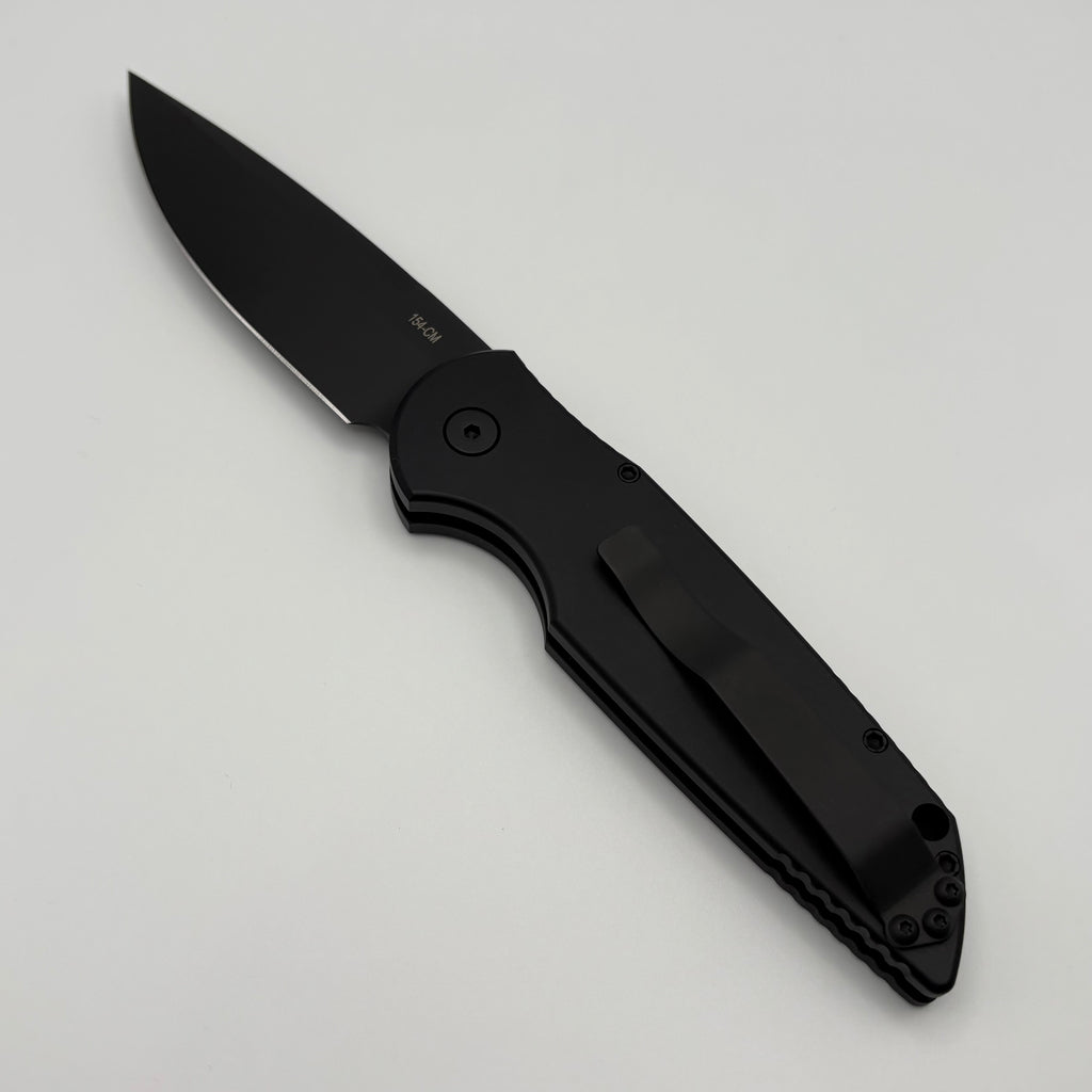 Pre-Owned Pro-Tech TR-3 Left Hand Version Black Grooved Handle & Black DLC 154-CM TR-3 L-2