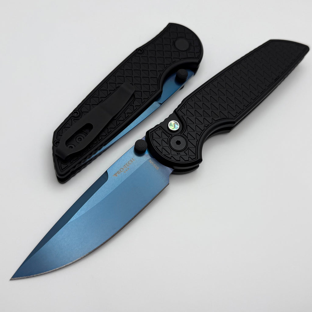 Pro-Tech TR-3 Integrity Manual Black Relic Aluminum Handles w/ Sapphire Blue PVD S35 INT106-SB