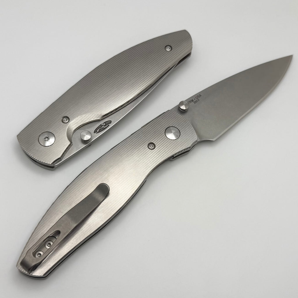 Released in 2019, the TRM Atom quickly became our flagship model, known for its featherweight design, precision slicing, and broad customization options. Weighing just 3 oz., the Atom features a 3.5" full flat ground blade made from our signature use of CPM 20CV BLADE and CPM MagnaCut powdered metal steel. It includes pocketed Titanium liners, custom Titanium hardware, and over 30 swappable Scale options. A customer favorite, often described as a 'Folding Scalpel,' the Atom balances everyday utility with TRM’s signature fit and finish-100% made and manufactured in the USA. USA is proudly etched on every blade.