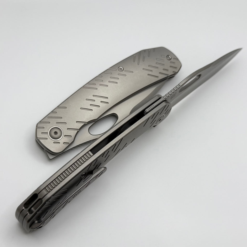 We Knife Inmate Gray Titanium Handles w/ Stonewash CPM-20CV WE23096B-1