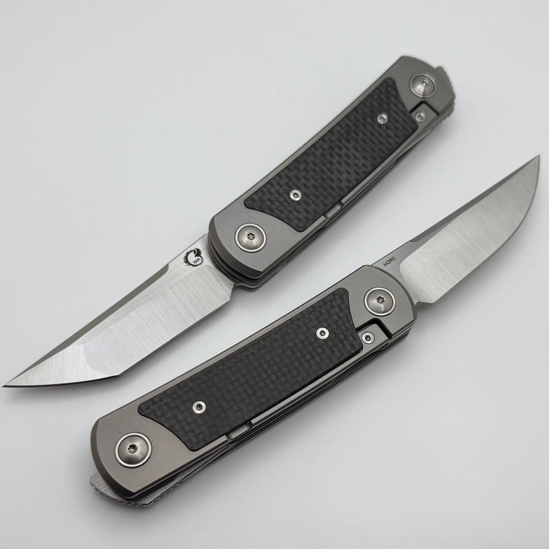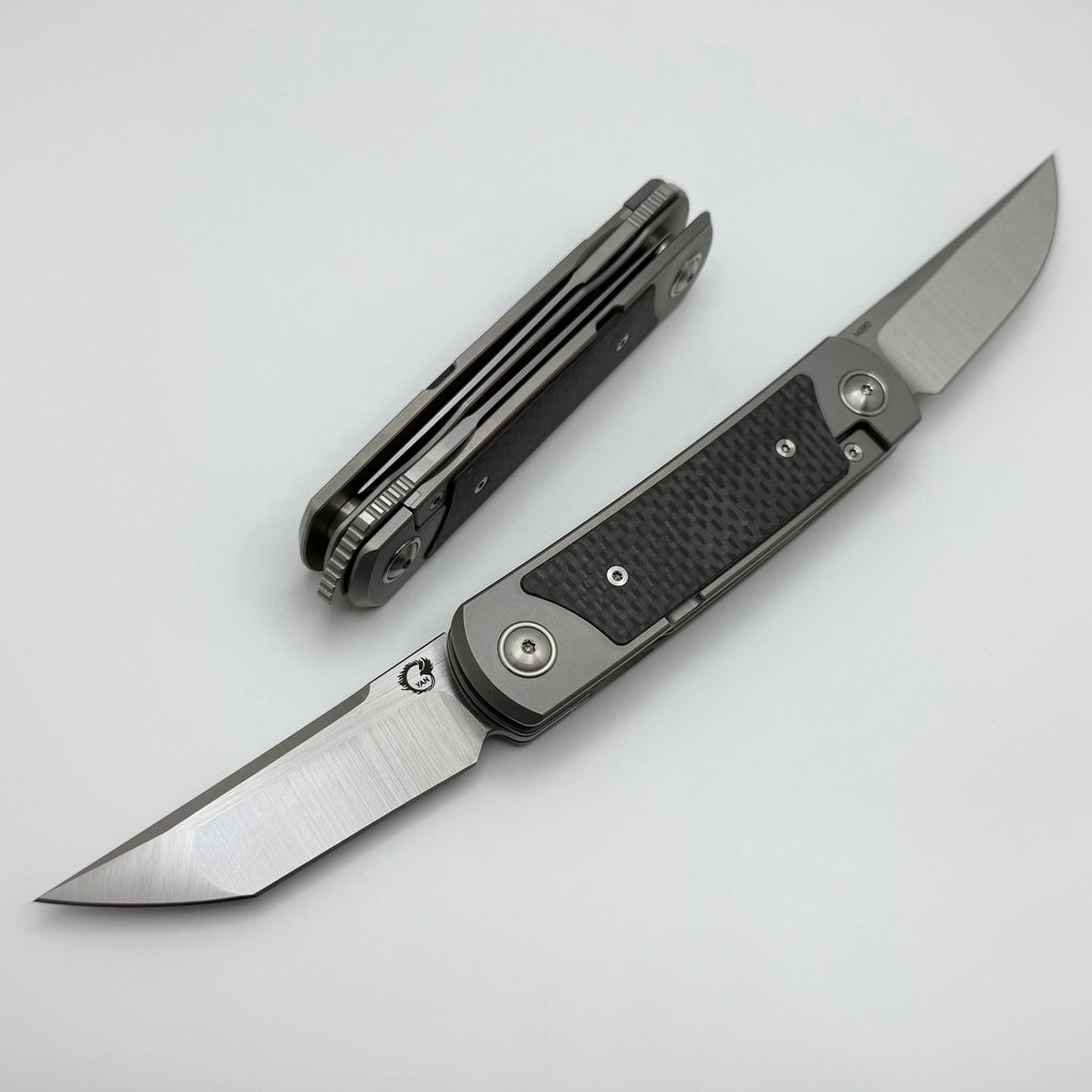 Yan Knives EMW East Meets West Carbon Fiber/Titanium Dual Front Flipper w/ M390 Drop Point & Tanto Blades