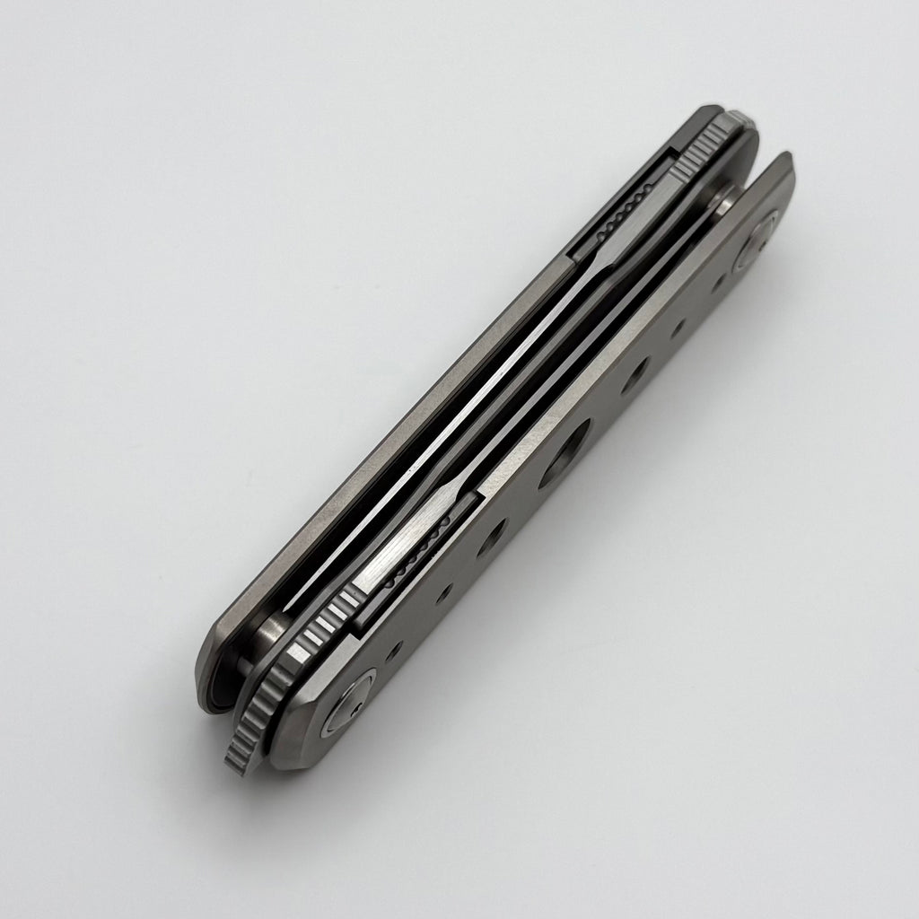Yan Knives EMW East Meets West Speedhole Titanium Dual Front Flipper w/ M390 Drop Point & Tanto Blades